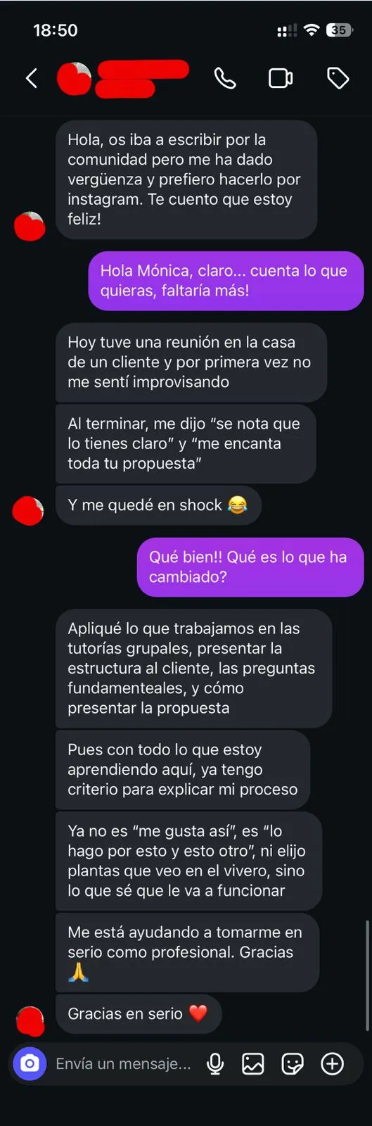 Los alumnos pueden plantear preguntas sobre diseño, plantas, mantenimiento, gestión de proyectos o decisiones concretas que estén enfrentando en su día a día. - Acompañamiento y criterio